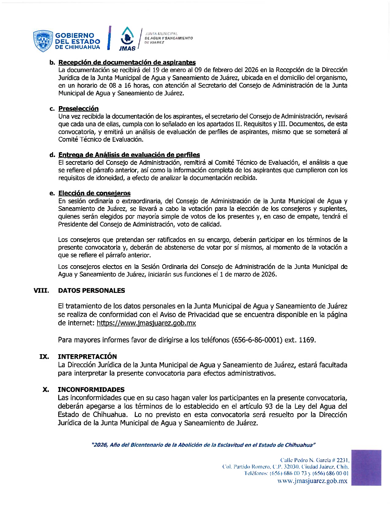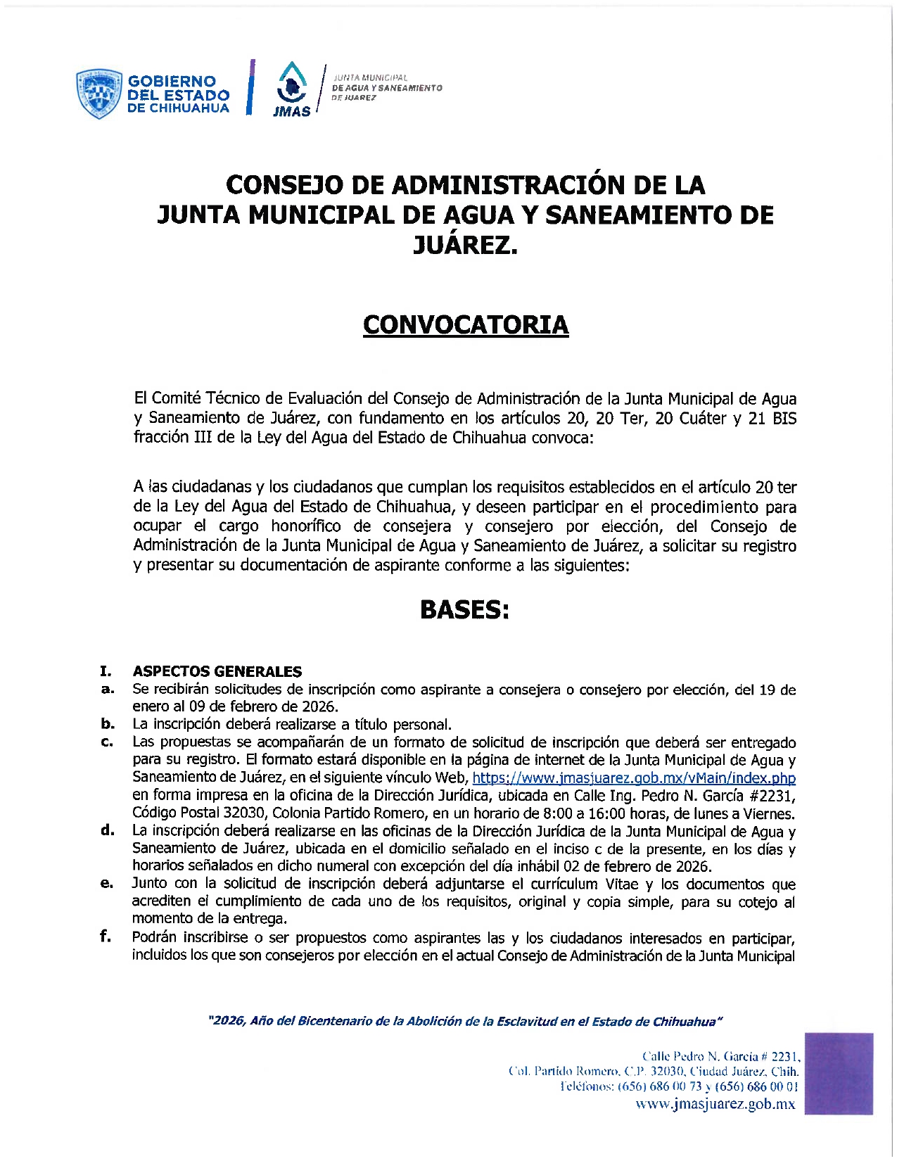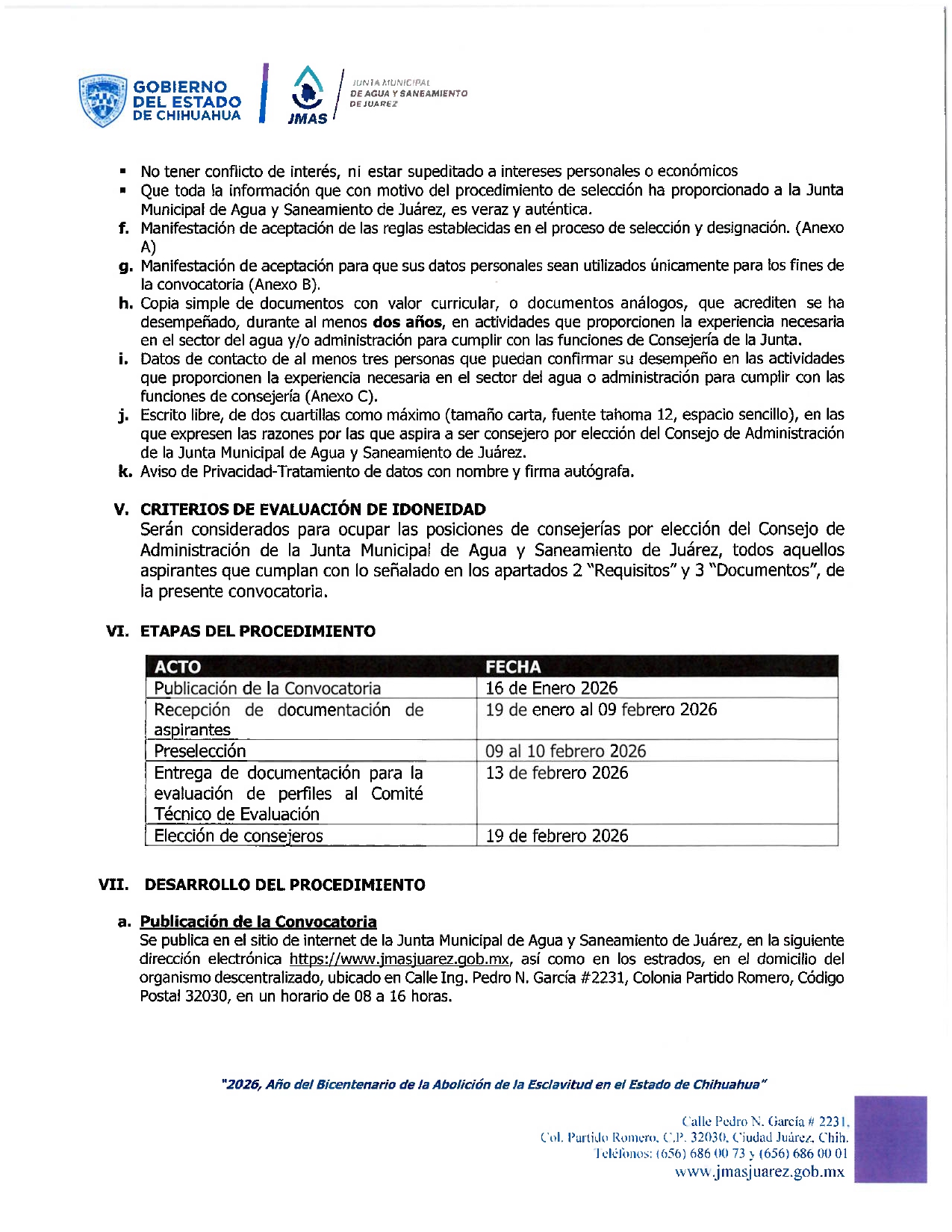 Renovación de los Miembros por Elección del Consejo de Administración de la JMAS